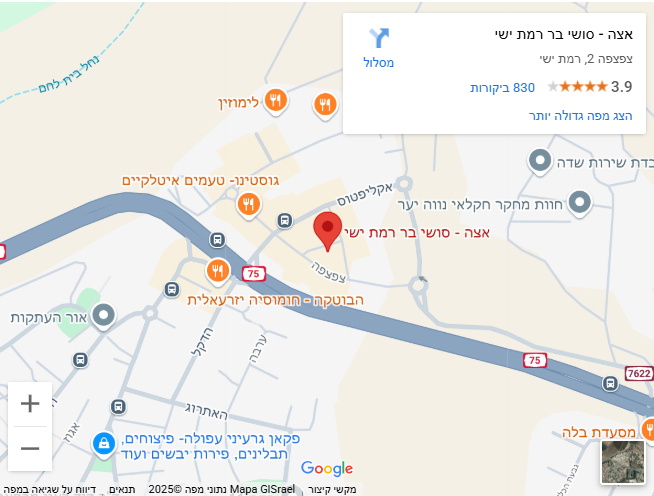 ←לצפייה ומתן ביקורות בכרטיס גוגל מי ביזנס של אצה סושי רמת ישי >> לחץ כאן