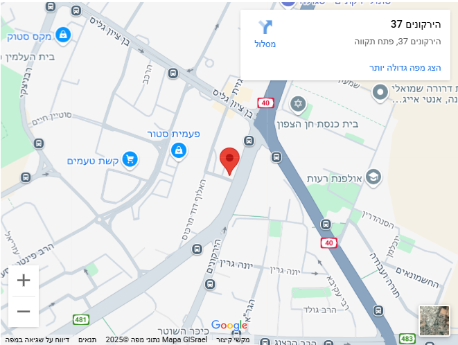 העסק שלנו ממוקם: ירקונים 37, פתח תקווה.